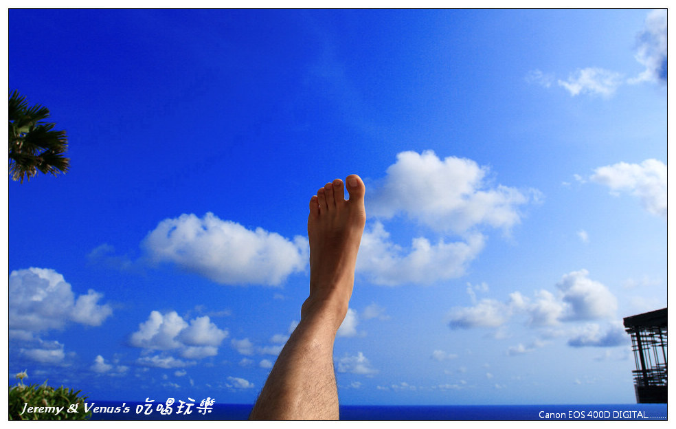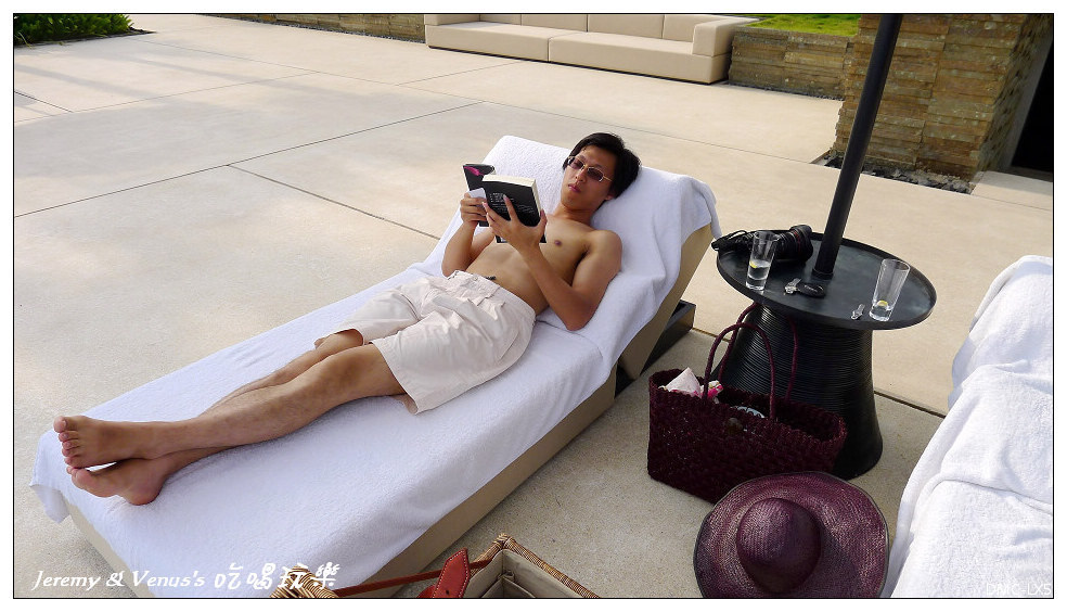 然後就這樣悠閒的躺在這邊看書曬太陽,一旁那藤籃跟草帽是每間房間內都有的,可以帶回家,可是我們沒有帶回來.....沒機會使用以及不方便帶回來.....