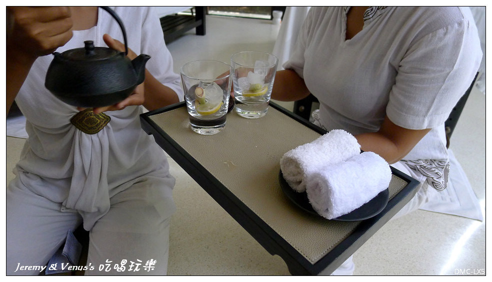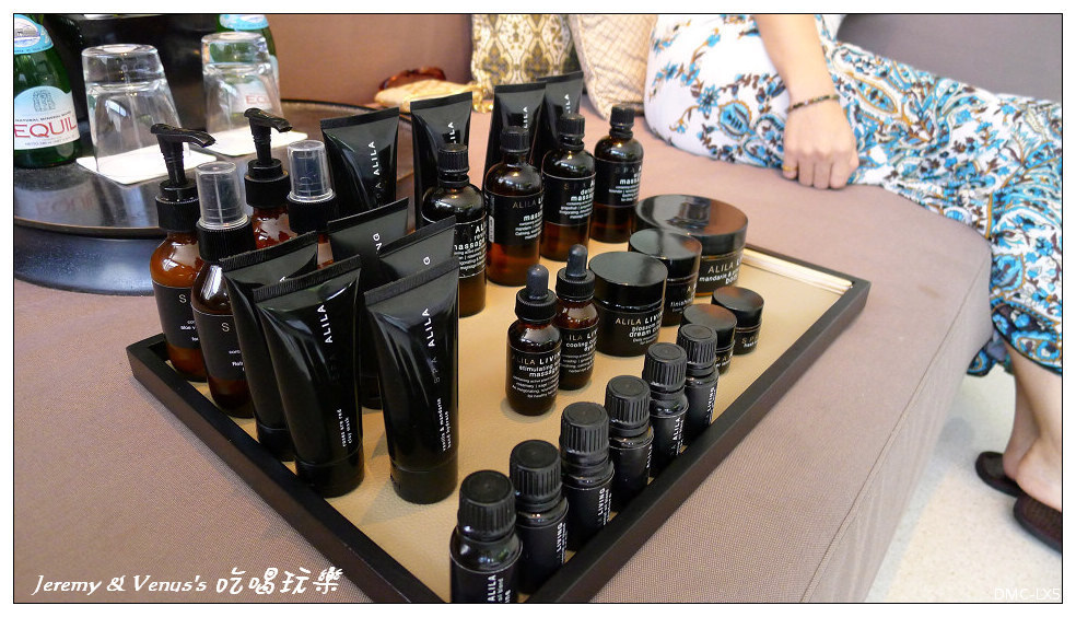 接著讓我們挑選自己喜歡的精油味道,然後仔細詢問我們的身體狀況,力道的拿捏,特別要加強按摩或是需要避開的地方等等,然後就開始SPA精油按摩的過程,當然就沒辦法拍照了,一開始先去後面的更衣室更衣換上浴袍後回到這邊,按摩師先替我們洗腳,床前擺的臉盆就是替我們洗腳用的,一旁還有沐浴鹽以及檸檬草,我還滿愛檸檬的味道的,然後趴在床上,按摩師會用大浴巾蓋住全身,一次只露出要按摩的部位,順序是左腳、右腳、右手、左手、上背部,翻身後同順序再一次外加頭部按摩,按摩時間大約一小時結束,然後到後面去淋浴
