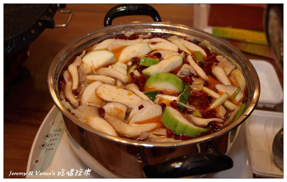 湯頭是內蒙古小肥羊養生火鍋湯底,這是辣的,還真的有點辣