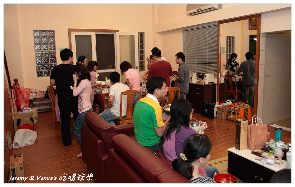 餐桌坐不下,有些人只好坐客廳