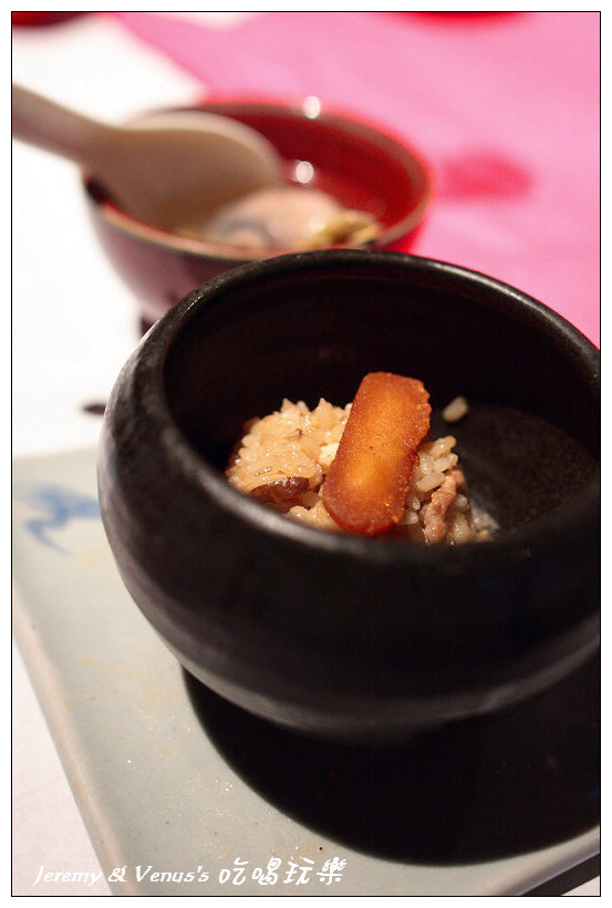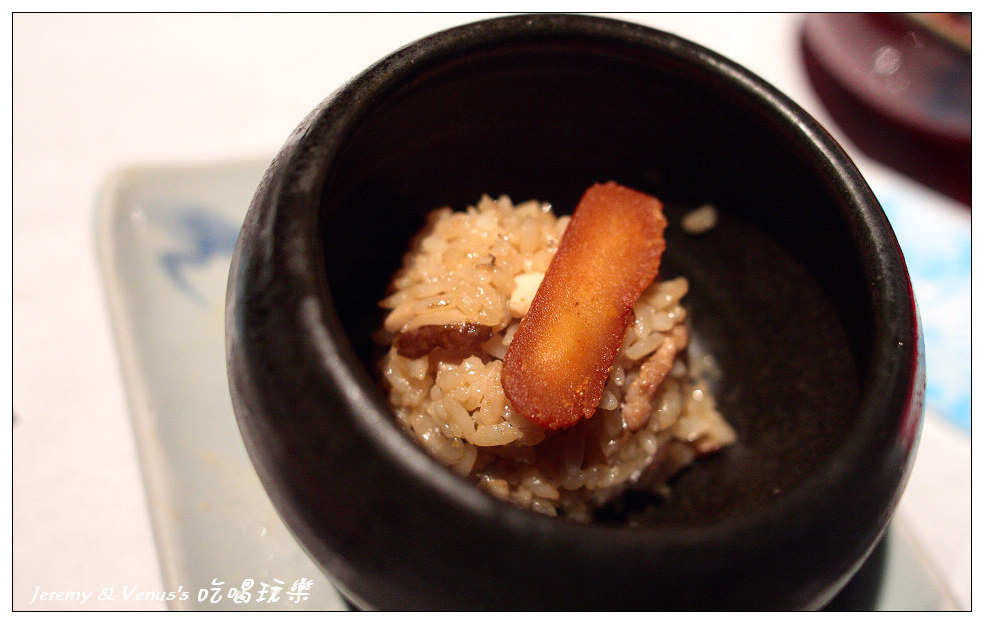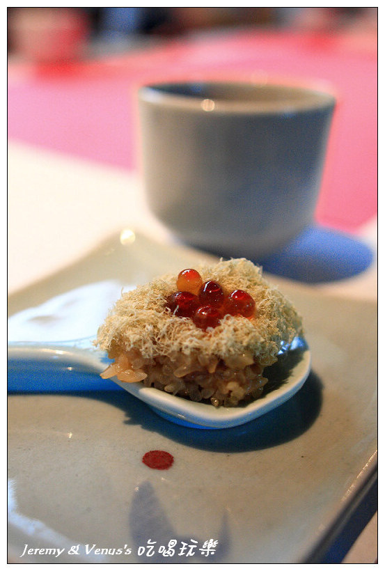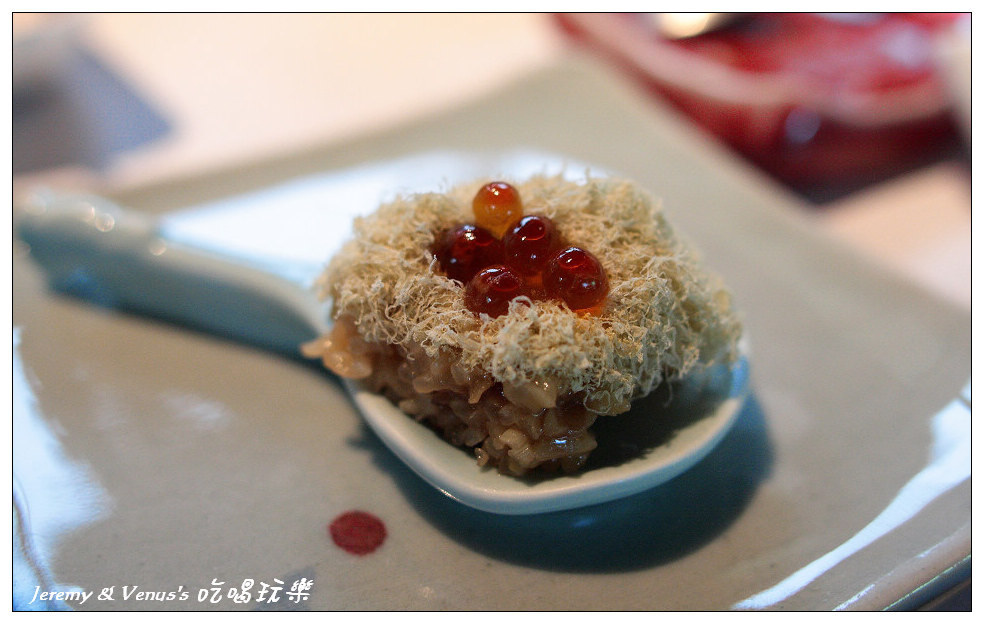 下面是油飯,中間那絲絲是什麼我忘了,上面當然是鮭魚卵啊