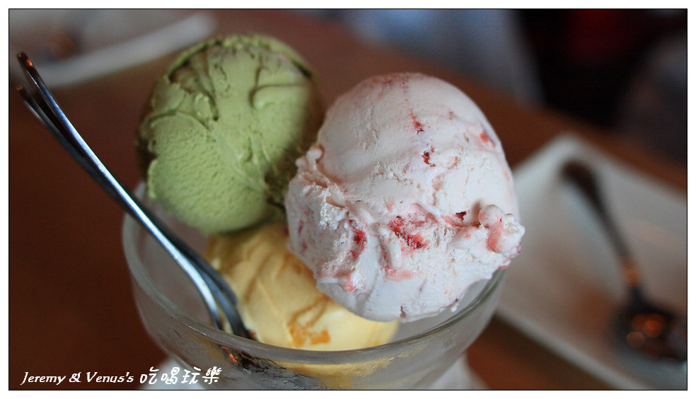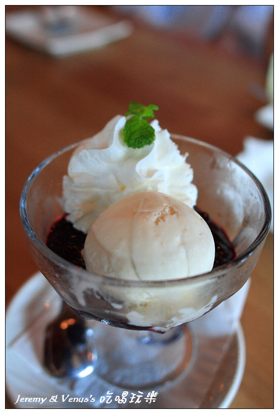 吐血,冰淇淋只有一球,另一陀是奶油,還有藍莓醬,這樣也是200,早知道我也點三球冰淇淋.....
