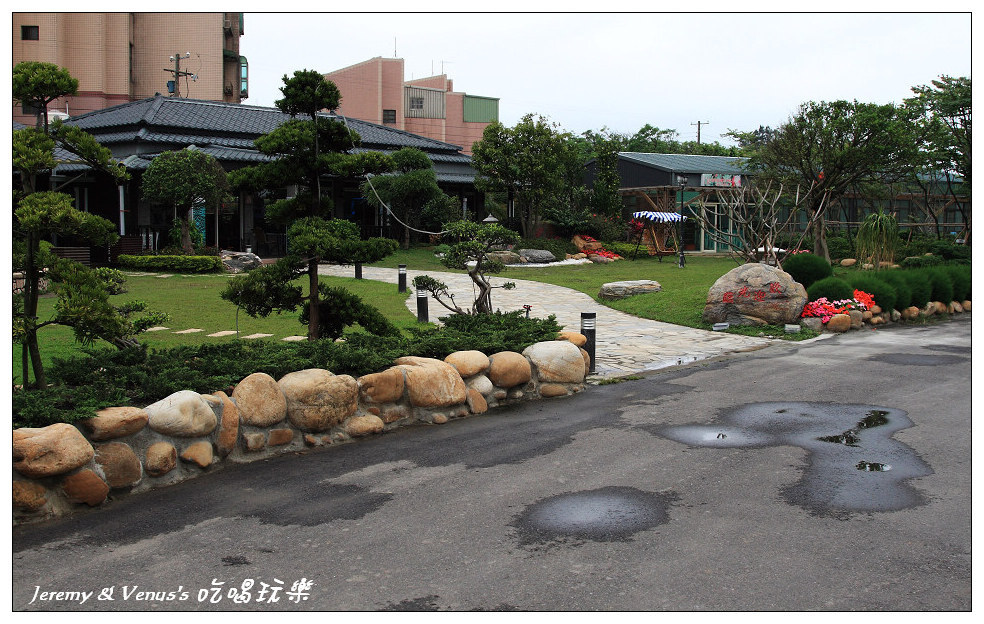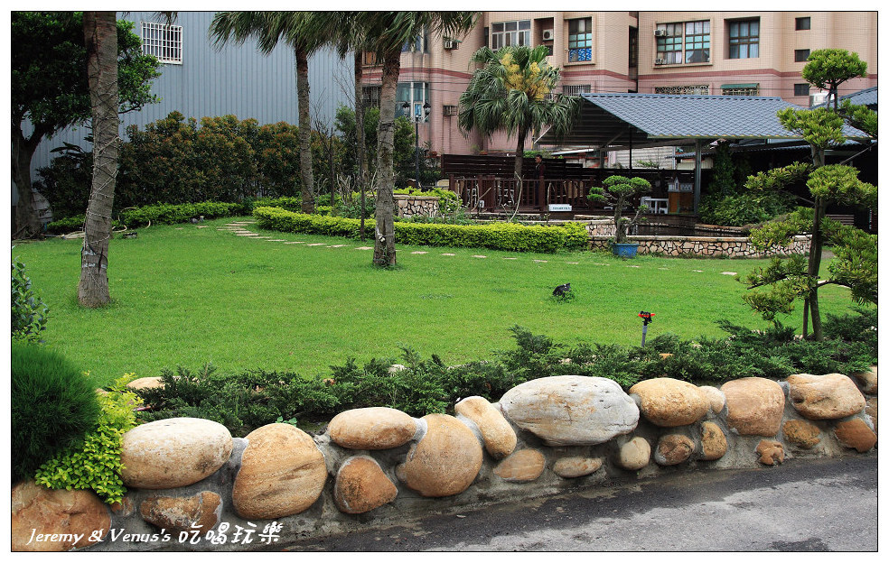 裡頭有1500坪大,庭院部分有魚池可以餵魚,有鳥籠養著鸚鵡,還有鞦韆、木馬、溜滑梯等設施,以及正在施工的兔子園,可以讓小孩子來這邊玩