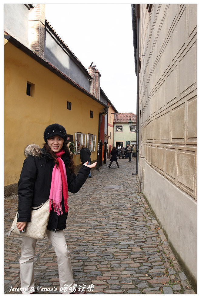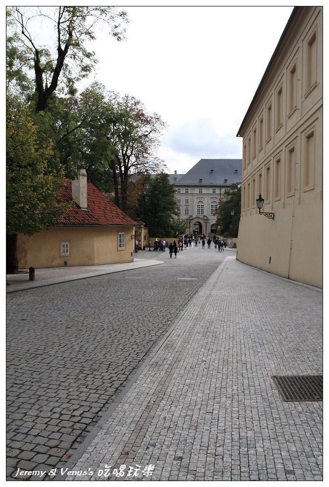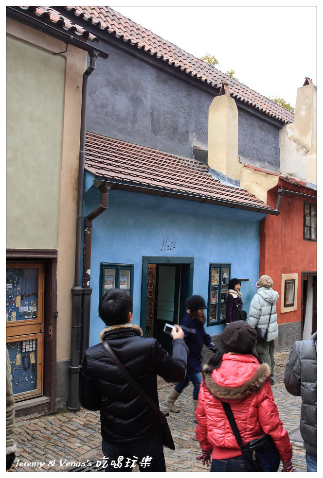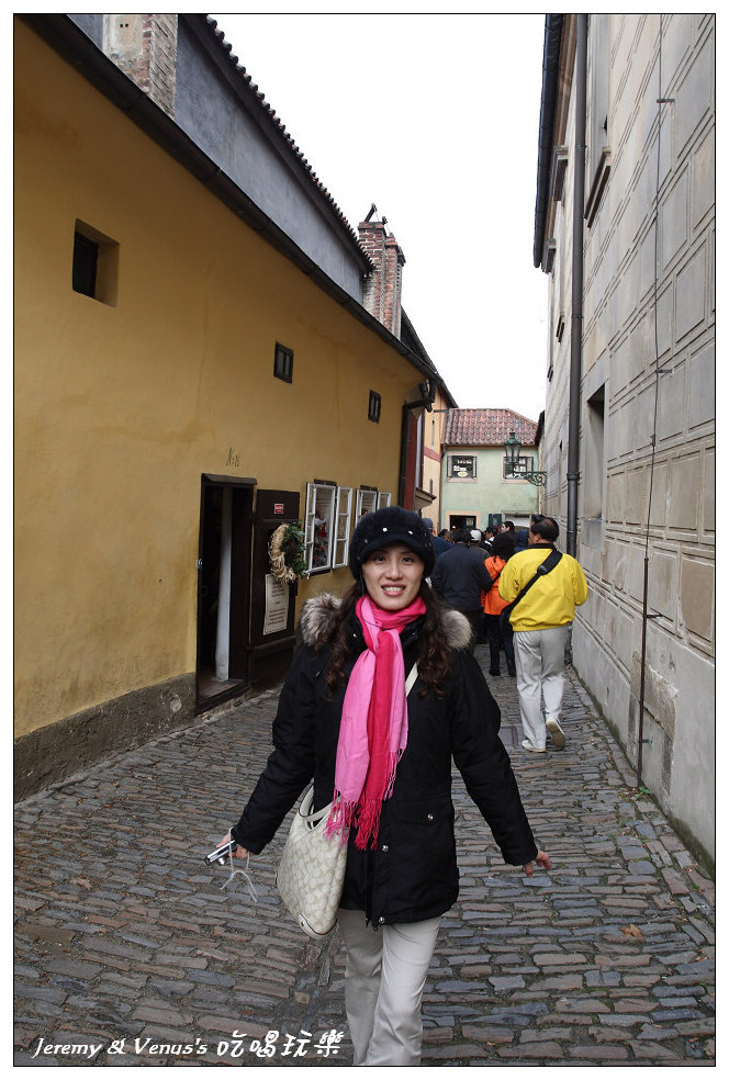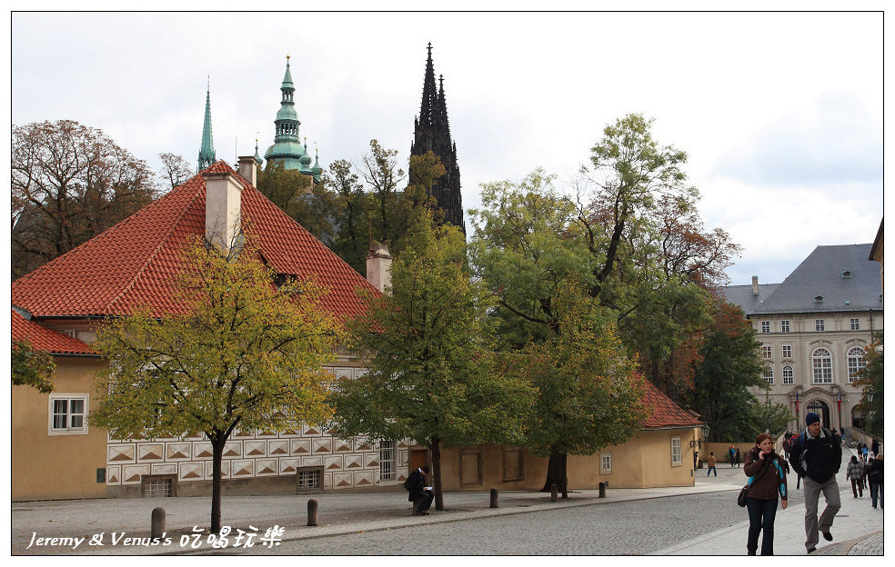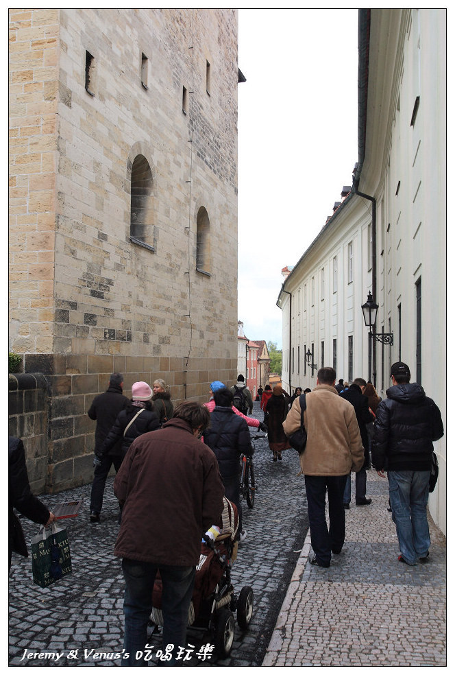 結束了遊船的行程,我們在伏爾他瓦河的另一邊,也就是布拉格高城區下船,然後搭乘地面上的輕軌電車來到城堡區,這裡是中古時期波西米亞王國的舊王宮,算是幾百年的古蹟了,入內參觀,但有告示牌指示裡面不可以拍照,所以我沒有照片可以給大家看,不過旁邊的大陸團以及不知道哪一國的旅行團都還是大棘辣的拿相機再拍,唉,旁邊的聖維塔大教堂也可入內參觀,還有那著名的卡夫卡所住過的黃金小巷22號,都是這裡的參觀景點,來看照片吧~