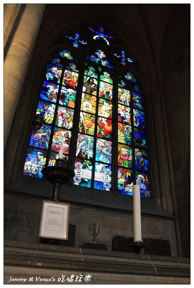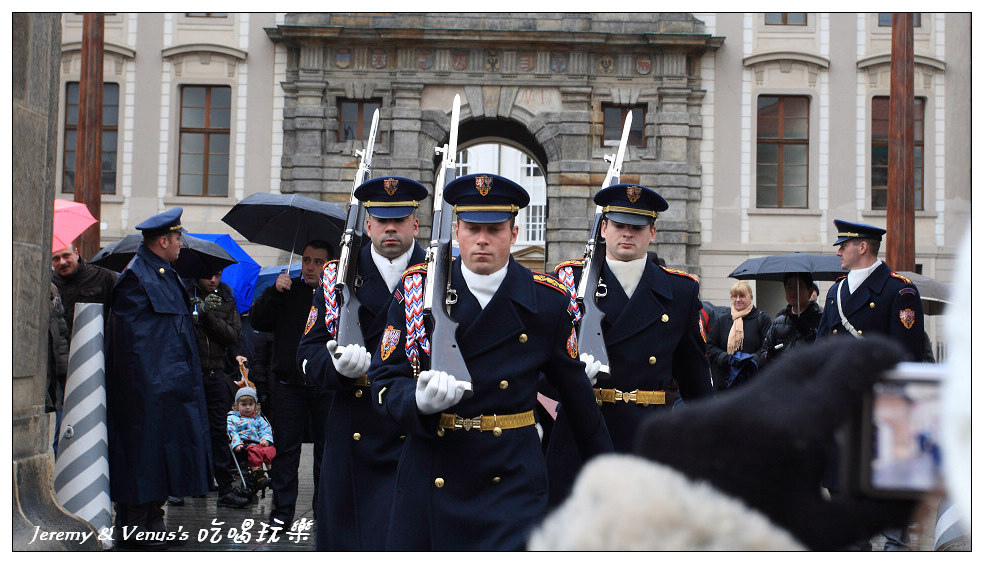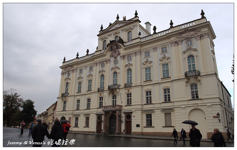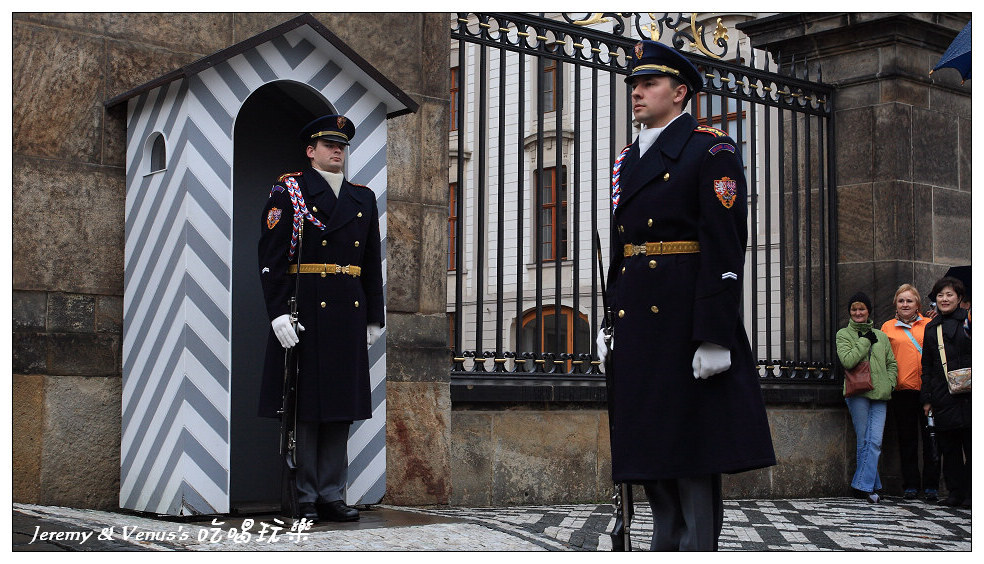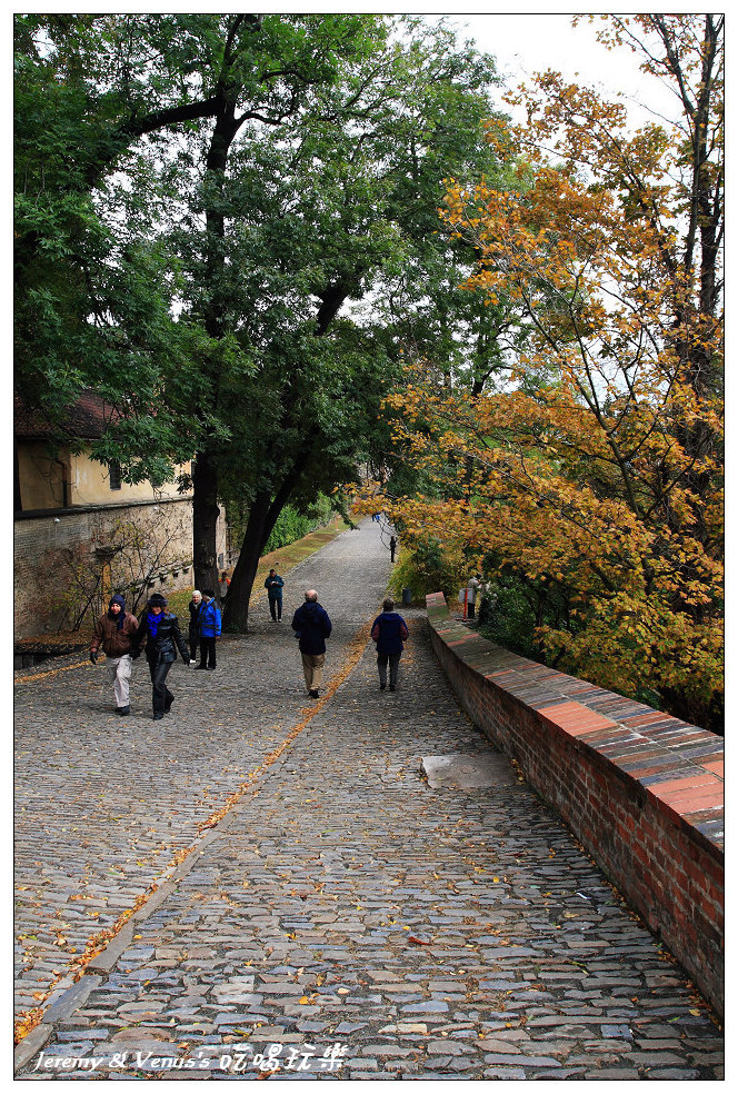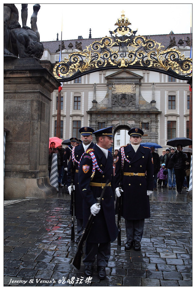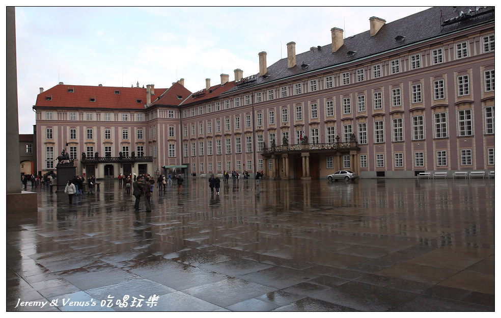 結束了遊船的行程,我們在伏爾他瓦河的另一邊,也就是布拉格高城區下船,然後搭乘地面上的輕軌電車來到城堡區,這裡是中古時期波西米亞王國的舊王宮,算是幾百年的古蹟了,入內參觀,但有告示牌指示裡面不可以拍照,所以我沒有照片可以給大家看,不過旁邊的大陸團以及不知道哪一國的旅行團都還是大棘辣的拿相機再拍,唉,旁邊的聖維塔大教堂也可入內參觀,還有那著名的卡夫卡所住過的黃金小巷22號,都是這裡的參觀景點,來看照片吧~