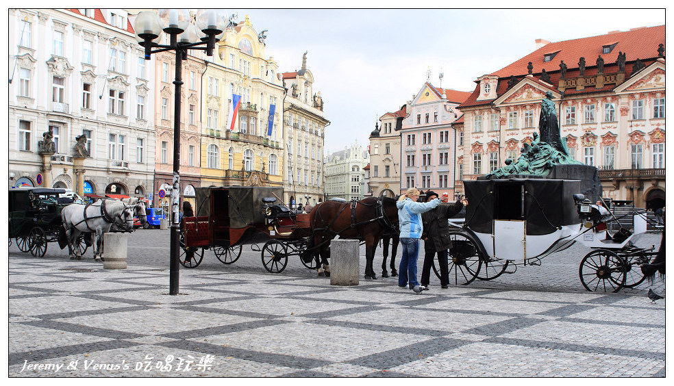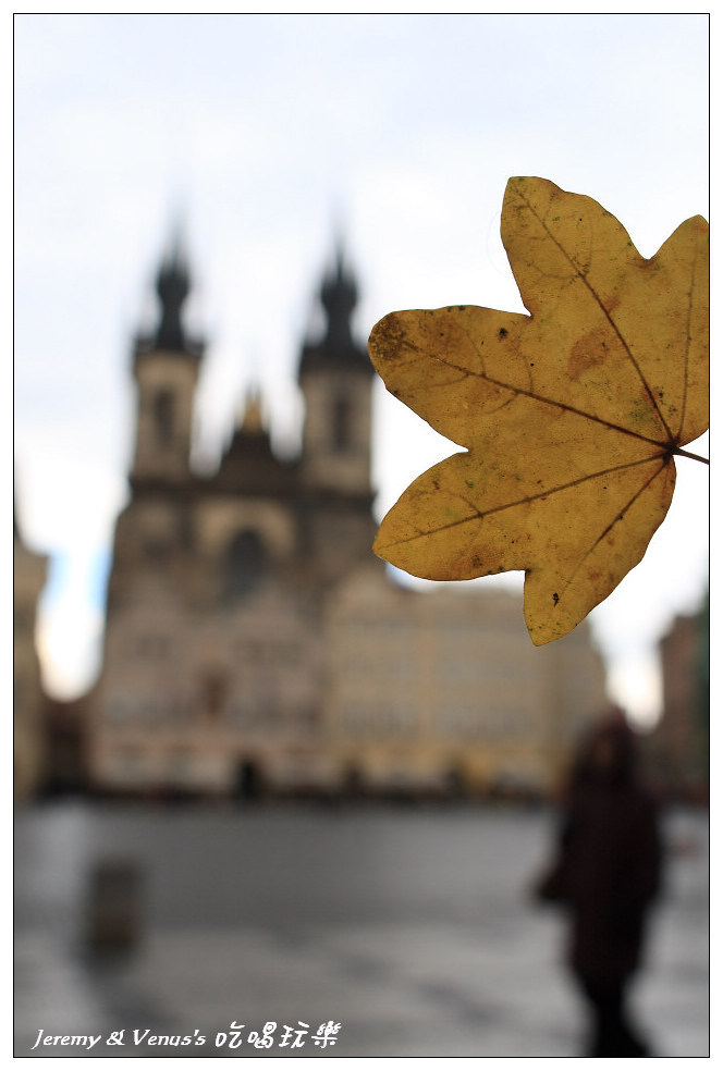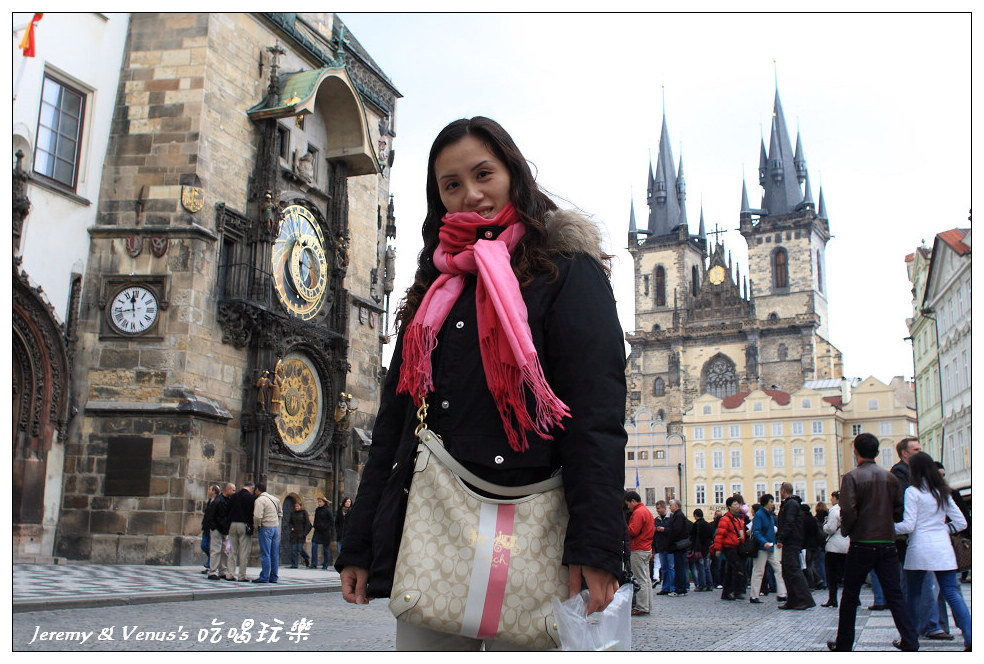 這是隔天中午在天文鐘下拍的,後面是提恩大教堂,布拉格著名的教堂