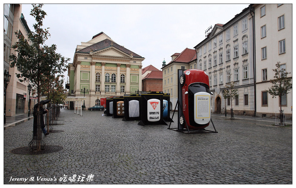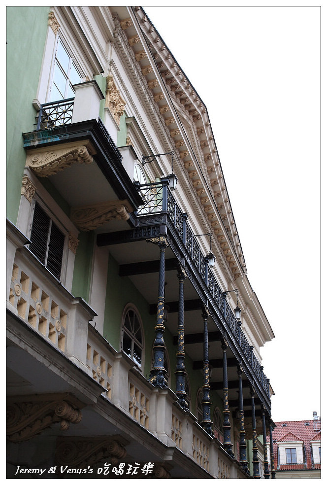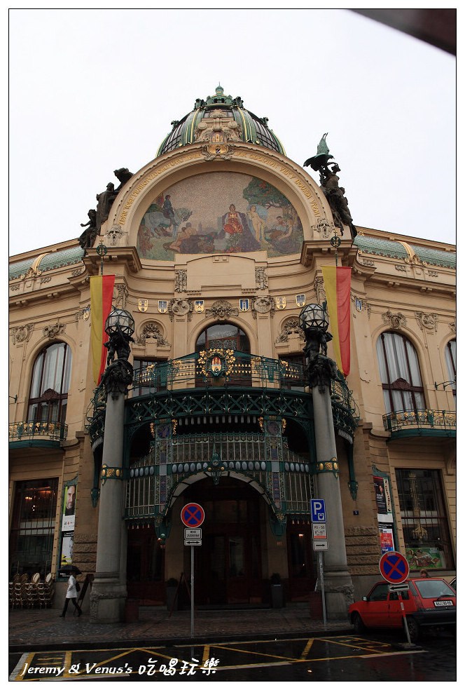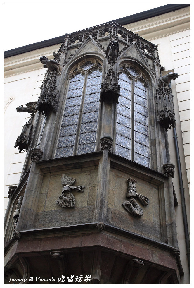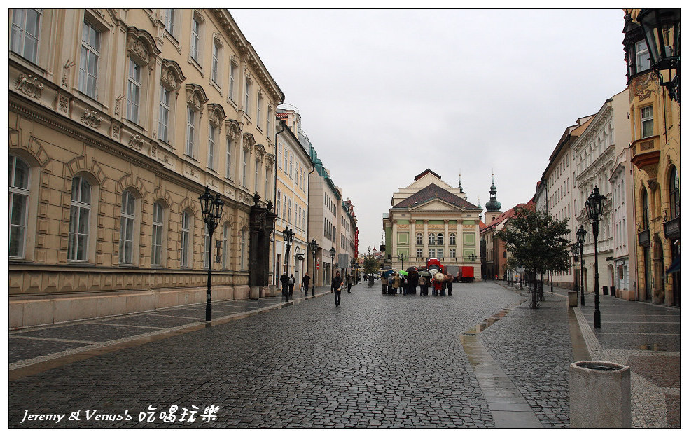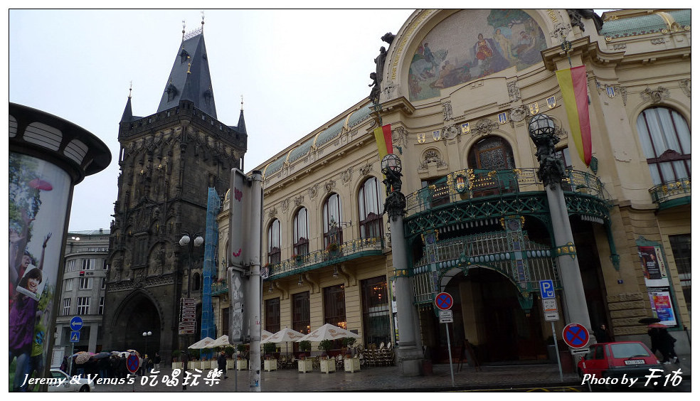 在用完早餐後,九點準時從飯店出發,不過今天上午,天空下著綿綿細雨,我那雨神的封號可不是浪得虛名,即使不下雪,還是會下雨的,真不知道什麼時候我才能擺脫雨神的封號變成陽光男呢?唉,下雨就令人高興不起來,相機又怕淋濕,一直包在外套裡面,拿進拿出的,實在很麻煩,最後乾脆都用小DC來拍,可是小DC的ISO調到800都忘了調回來,在相機上看很好,不過在電腦上一看,那真的是慘不忍睹,所以,今天上午真的沒拍啥照片,零零星星隨手亂拍一通,大家加減看吧。今天上午的行程在逛布拉格舊城區,從飯店出發,經火藥塔、露天市集、舊城廣場、猶太區,最後到伏爾他瓦河邊搭遊船,就醬~