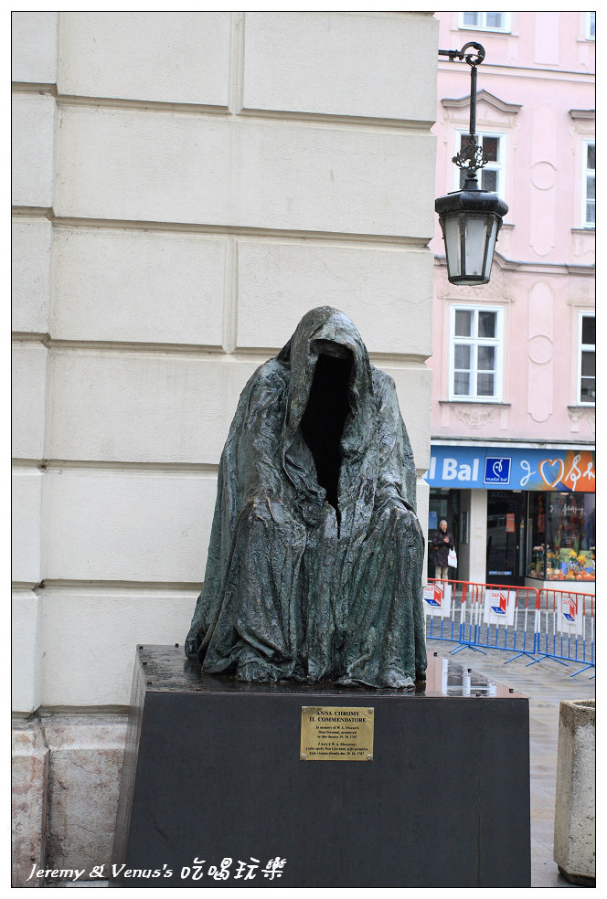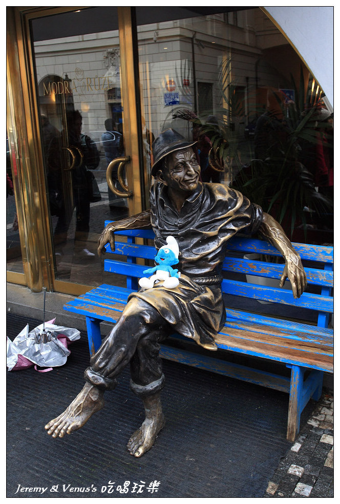 行程的第五第六兩天,也就是今明兩天,行程都是在布拉格,之前說過,昨天遊覽車把我們放下之後,要到第七天早上才會再出現,所以今明兩天在布拉格的行程都要用走的,為什麼呢?因為布拉格市區內的街道很複雜,而且很多都是單行道,CHERRY說以前有人從某處搭計程車到查理橋,步行短短才十分鐘的路程,搭計程車要台幣八百塊,因為一直在繞路,也不是司機亂繞路,而是非得這樣繞路不可,所以遊客到布拉格大多是用走的,再不然就是搭電車或地鐵,好,那就走吧,不過布拉格市區的一大特色就是石板路,地面都是鋪石板,硬梆梆的,鞋子要是不夠軟不夠好走的話,腳底板很快就會痛的,所以去捷克一定要穿好走的鞋子。忘了說一件事,捷克政府有規定,旅行團遊覽布拉格時一定要請一位當地的導遊來帶領解說,因此我們請到了~托馬斯~來帶我們今天的布拉格一日遊,托馬斯是捷克當地人,以前曾經來台灣唸書,所以中文說的很好,今天就交給他了,CHERRY姐正好可以讓她的喉嚨休息一天,不然聽她這樣講下去,還真擔心她的喉嚨會沙啞,不過她還是得跟著我們走,替我們注意周遭,幫我們跑去買船票、電車票、地鐵票,以及張羅午餐事宜等等。
