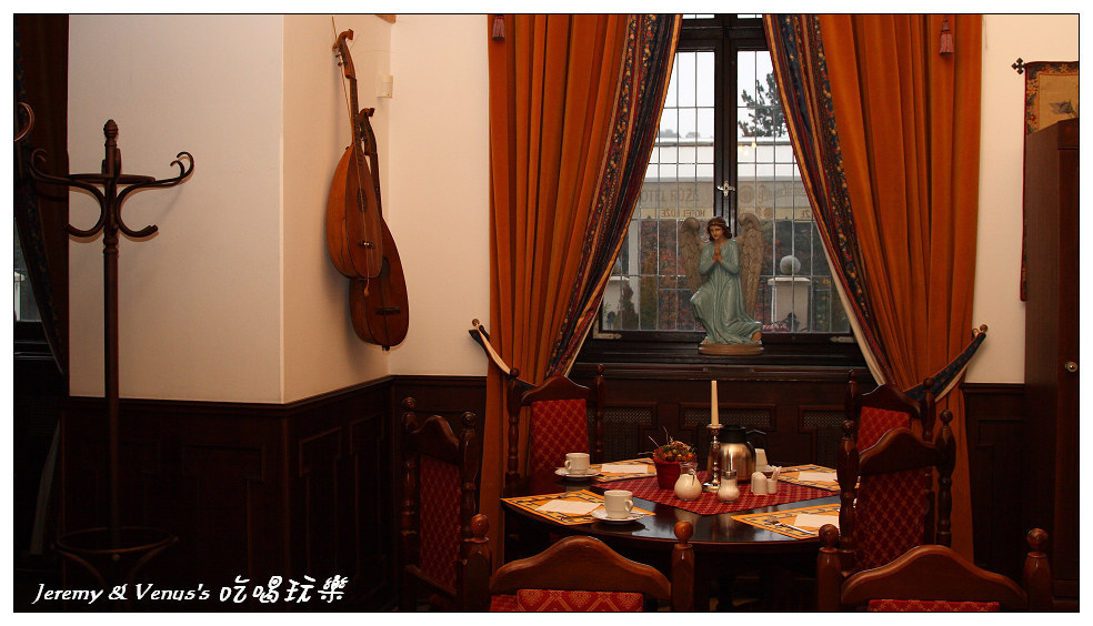 餐廳,這家飯店除了是古老建築之外,本身以前是修道院,所以有很多宗教擺飾
