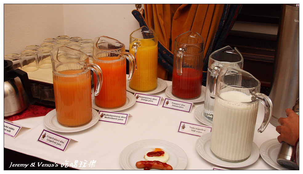 好,行程來第三天,昨晚住宿在庫倫諾夫的百年薔薇飯店HOTEL RUZE,當然早餐也是在飯店裡享用嘍,地點一樣是在昨天穿那怪怪衣服吃晚餐的地方,歐式的自助式早餐,不外乎就是那幾樣,看看吧。