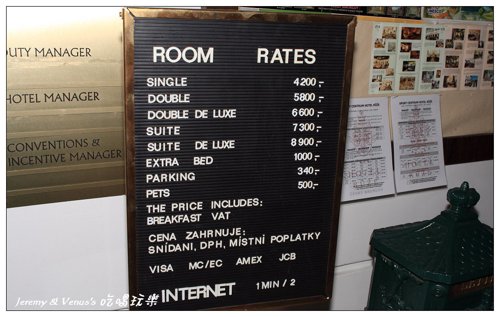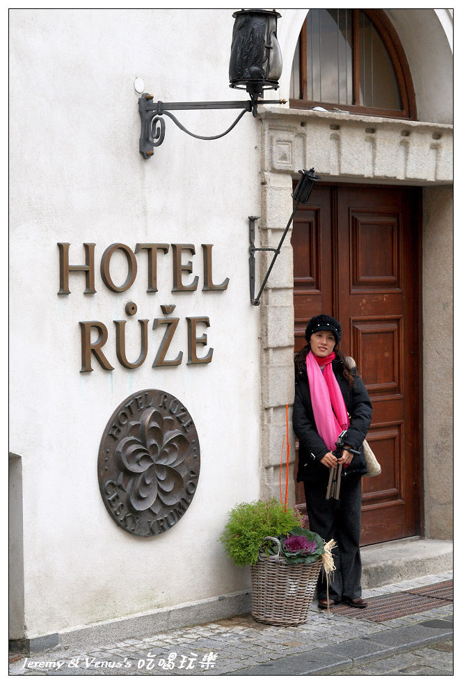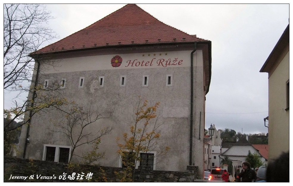 第二天的晚上,即將在捷克睡第一晚,來到了庫倫諾夫,這個充滿童話色彩的小鎮,也是捷克境內的世界文化遺產之一,抵達時已經快傍晚了,於是先入住今晚的下榻飯店:HOTEL RUZE百年薔薇飯店,已有將近500年歷史,前身是當修道院使用,在1889年正式改成飯店對外開放營運。