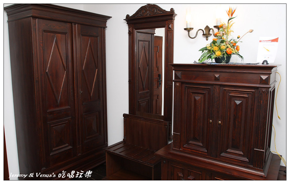 房間內小小的,但看的出來家具大有來歷,原木的,都還可以聞到木頭香