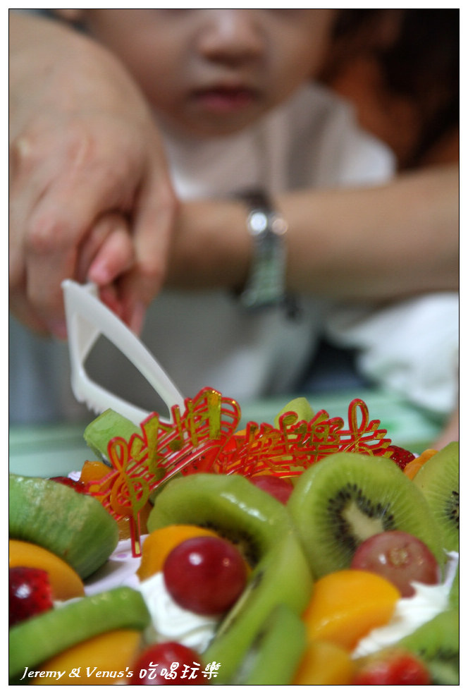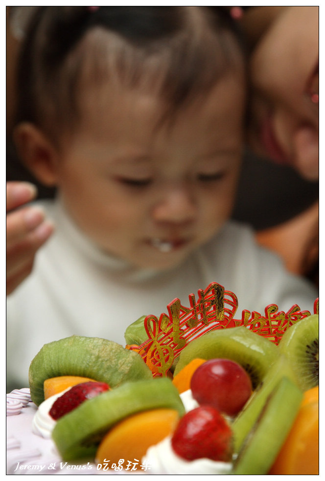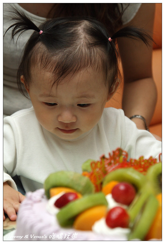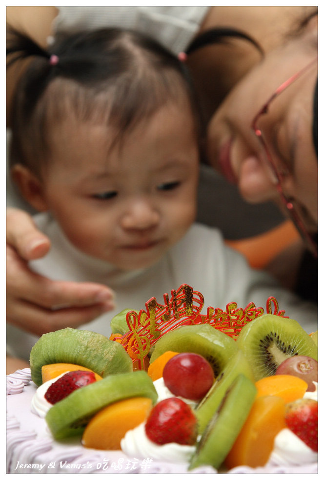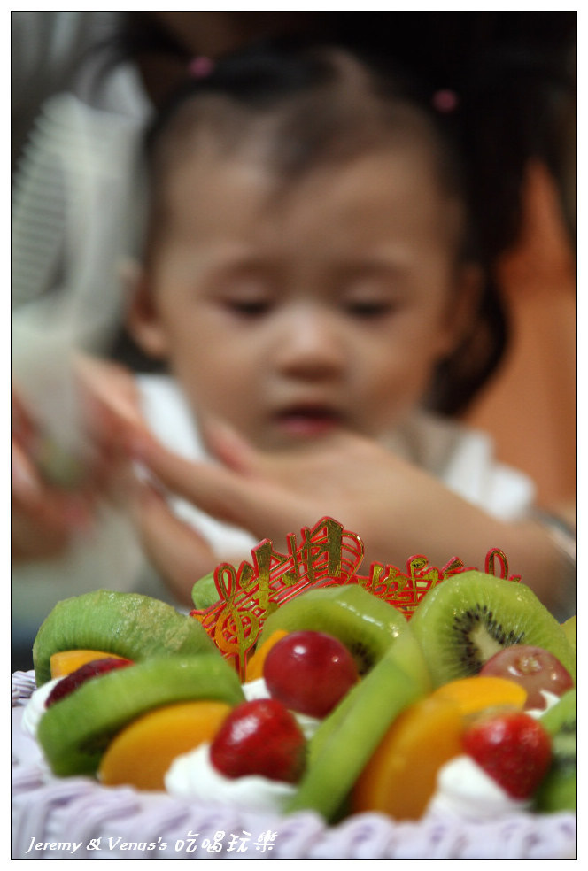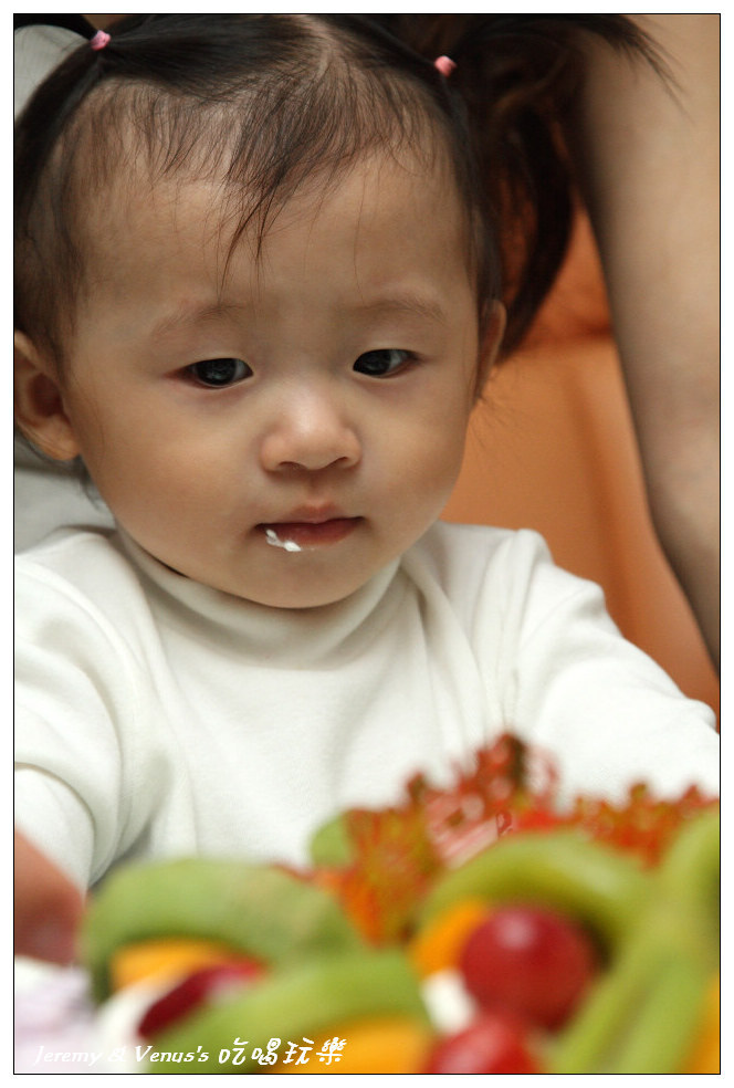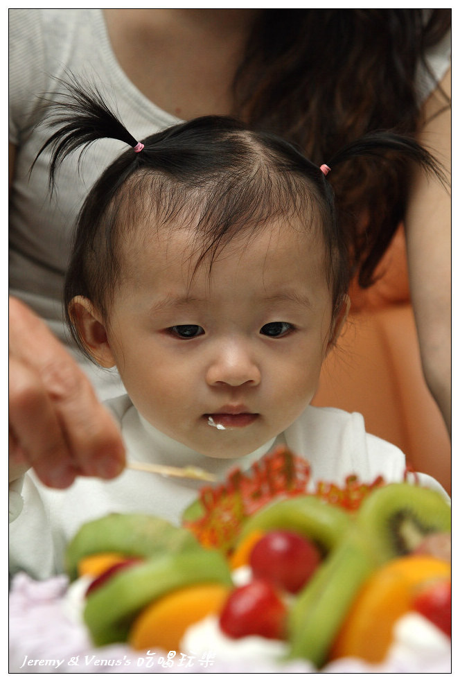 給她吃了一小塊,再給她吃顆奇異果(當然不是蛋糕上的,是另外一整顆)
