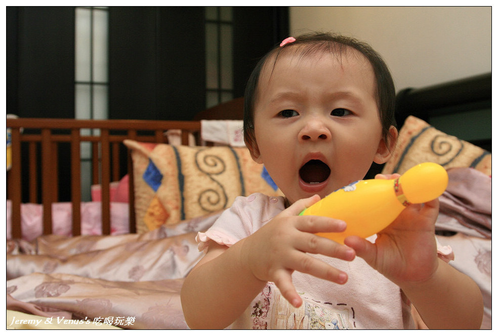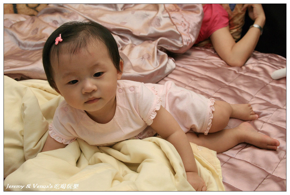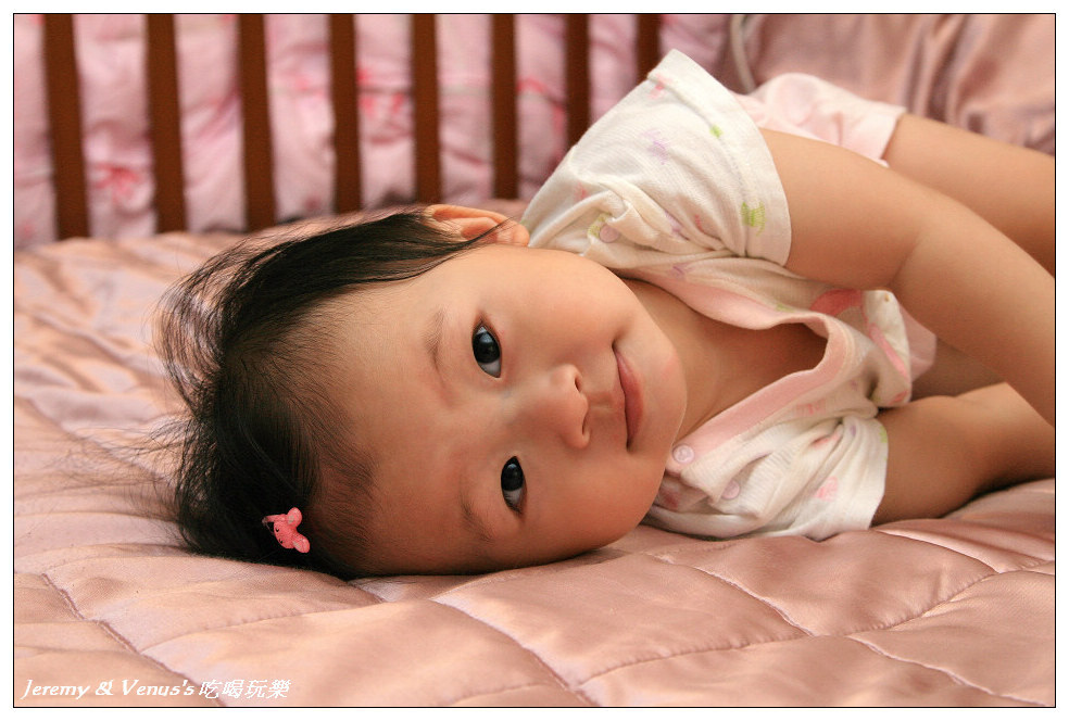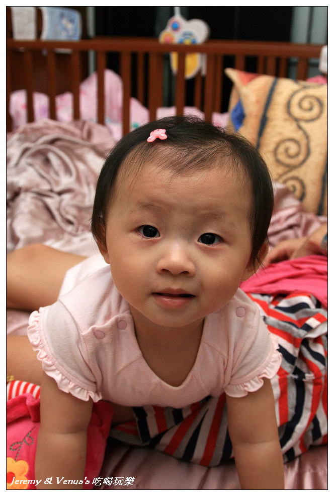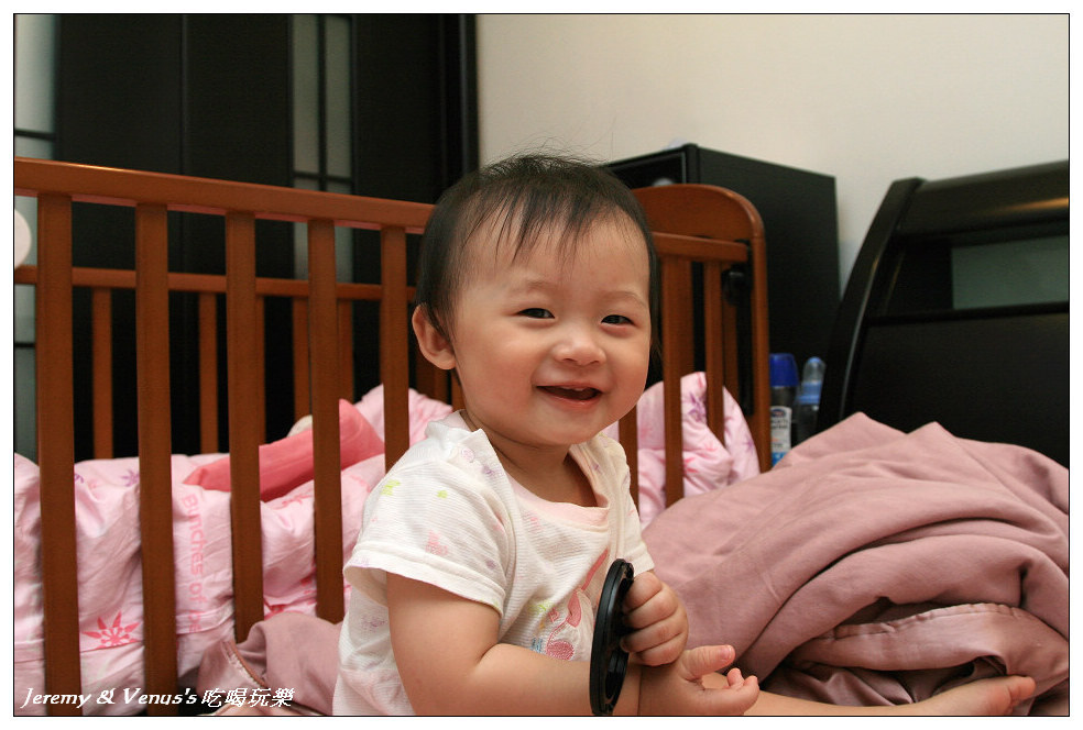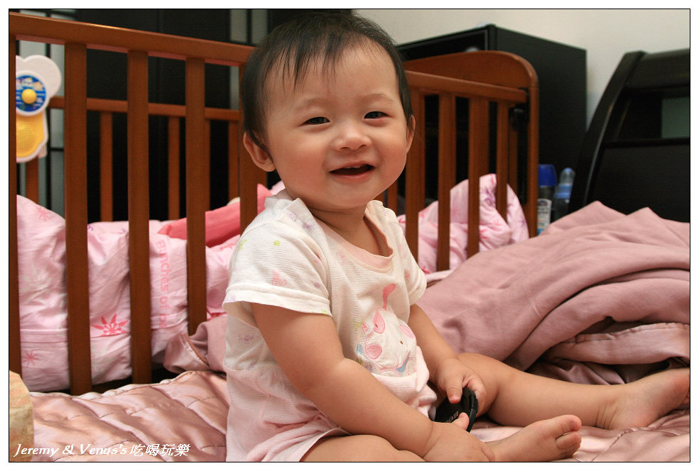 目前讓她睡在她自己的嬰兒床上,嬰兒床至少要睡到兩三歲吧