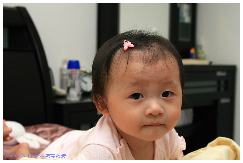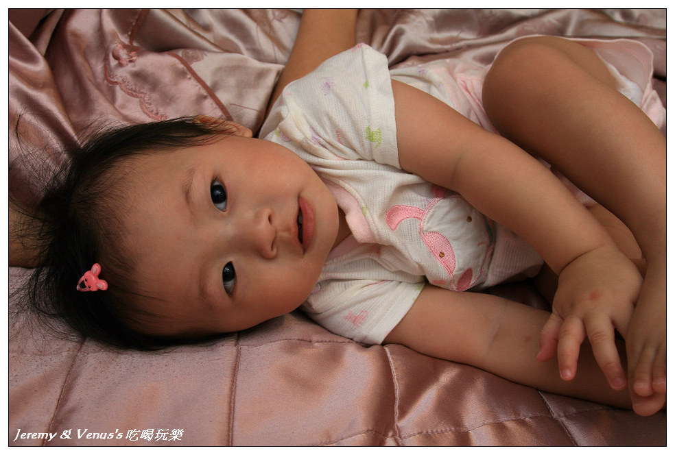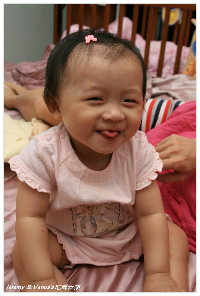 Freya不怕生,誰抱都可以,笑點很低,哭點也很低,高興的時候笑得很開心,不高興的時候哭的很用力