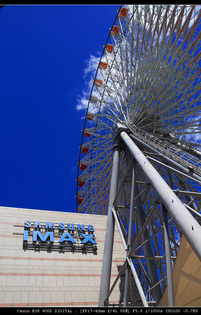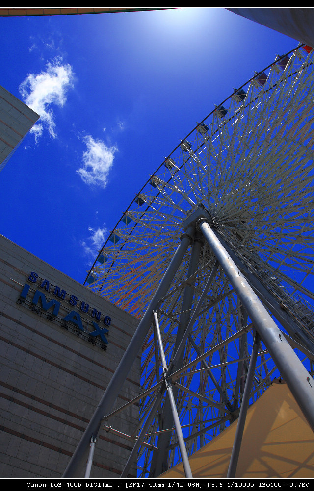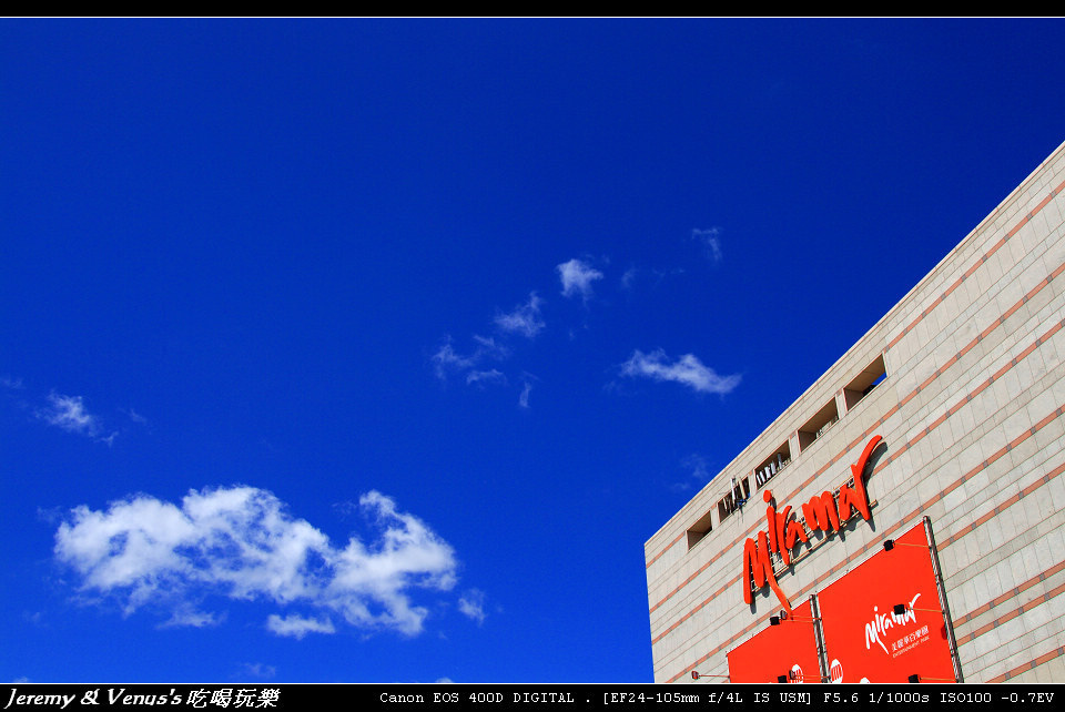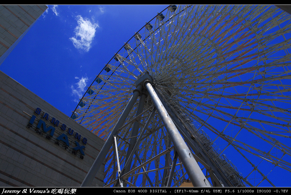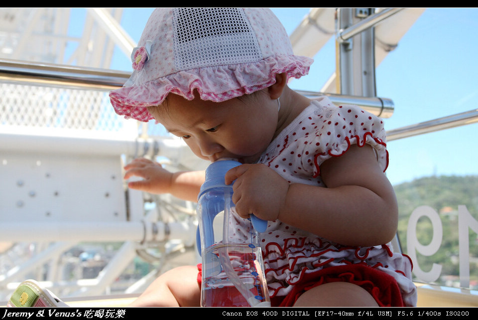 依照以往慣例,為了避開人潮,得趕在百貨公司一開門就去,中午過後許小宸想睡覺時就可以回來了,這幾天的天氣真是晴朗無比,天空更是藍到爆,當然的,紫外線也是殺傷力十足,假日的美麗華,加上捷運內湖線通車,人潮也是不少,趁著剛開門人還不多,先去坐摩天輪吧。