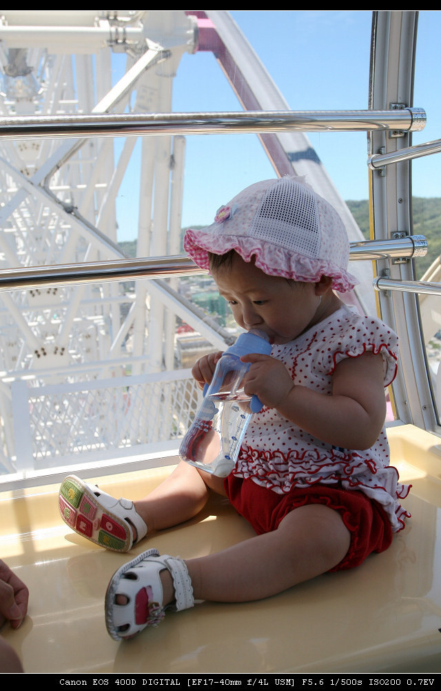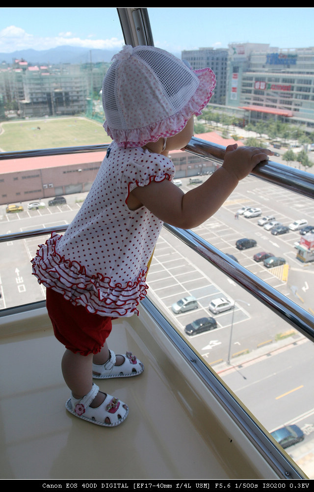 炎炎夏天,雖然說在家吹冷氣最好,不過許小宸似乎很不喜歡待在家裡,帶她出去走走也好,不過這麼熱的天氣,去那邊好呢?網路上查了一下大家的意見,唯一公認最好的答案就是~去逛百貨公司吹冷氣,這是什麼意見啊?此答案雖然不是很好,但也是目前來說最適當的答案,那就帶許小宸去美麗華坐摩天輪吧。