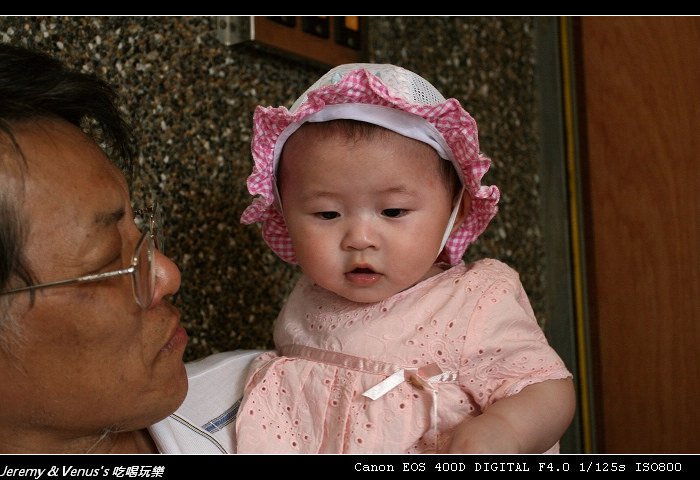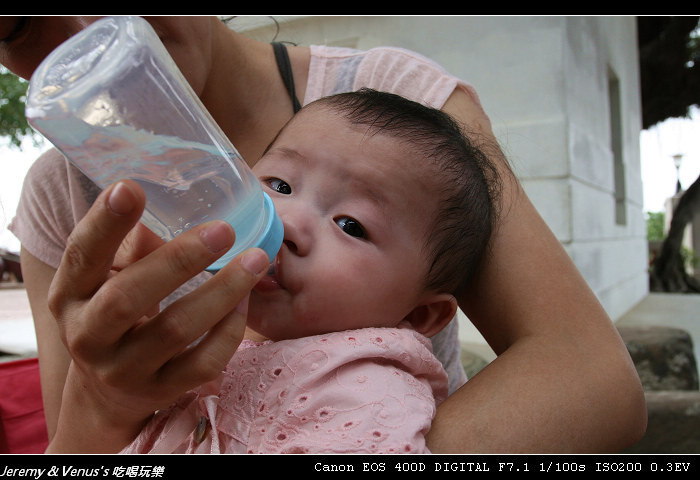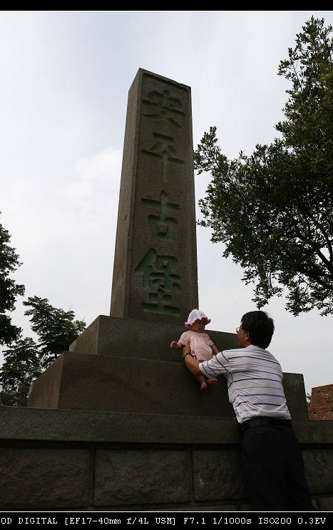 自從小宸宸出生後,阿祖都還沒看過,所以在端午節前一個禮拜回台南去給阿祖看看,阿祖就是小宸宸的外曾祖父母,也就是小宸宸他媽媽的爺爺奶奶,也就是小宸宸他媽媽的爸爸的爸爸媽媽,在台南麻豆的老家,這次專程帶回去給阿祖看看,星期六上午從台北下去,中午就到台南了,下午小宸宸的外公帶她去安平古堡走走~