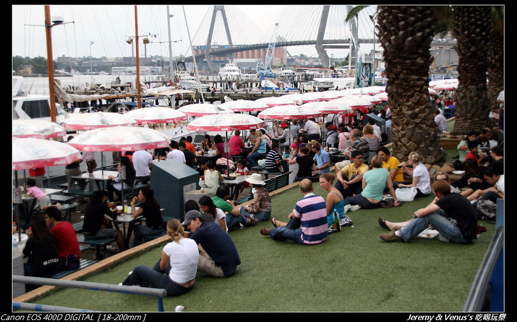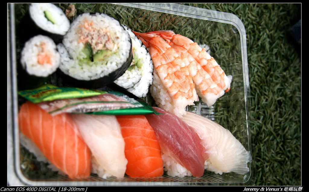 午餐買到手後,到外面去吃,不過人山人海,根本沒座位,只好直接坐在草地上野餐了。