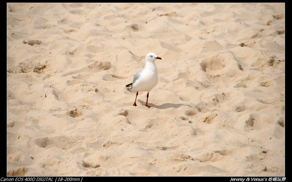 邦黛海灘,介紹是說這裡的沙非常的細白,讓你忍不住脫下鞋來,漫步在碧海藍天之間。比台灣墾丁的沙還要細白是沒錯,但比起馬爾地夫還差得遠了。這邊倒是衝浪的好地方,不過澳洲要衝浪當然還是要去黃金海岸啊!