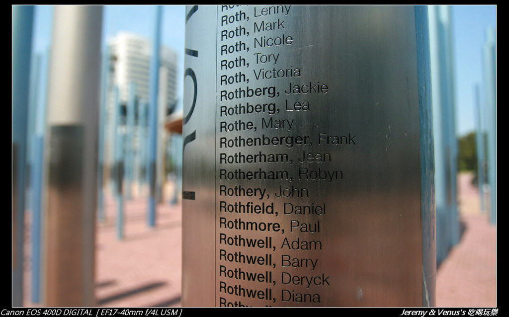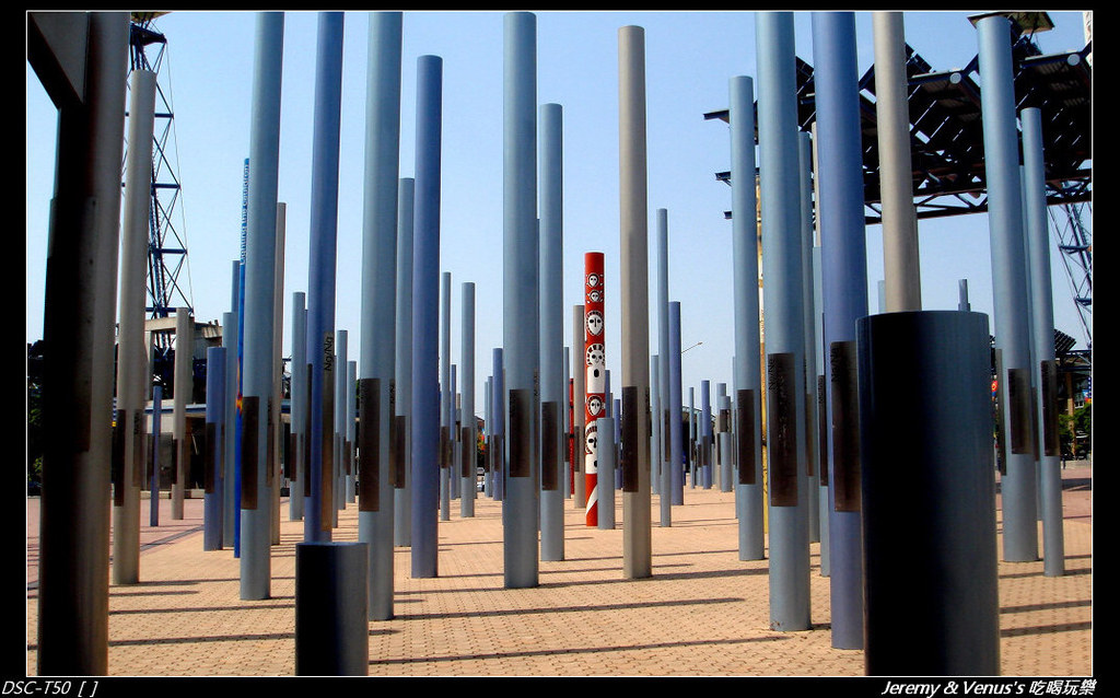 實在很無言,不知道排這個行程幹什麼?這算是景點嗎?2000年奧運就在澳洲雪梨舉辦,政府為了奧運特地花大錢蓋的運動場,就好比2008年北京奧運,北京政府蓋了鳥巢一樣,都是為了舉辦奧運,但是,當奧運結束後,這些運動場呢?一年使用過幾次呢?所以就拜託旅行團排入旅遊景點,讓我們來看看這雪梨奧運會場,廣大的場地,沒幾隻貓,只有少許的遊客,廣場上立了19座火炬,好像是因為在2000年雪梨奧運之前共舉辦過19屆,所以立了19座火炬。還有許多柱子,上面有許多人名,就是蓋這座運動場的人,很多並不是工人,而是熱心的民眾自願幫忙興建,所以把他們的名字刻在上面。當然的,拍拍照交差了事。