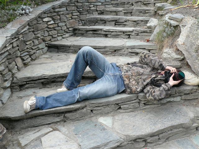 快十點了才出發前往今天的第一站,皇后鎮私人小教堂,在台灣有一本書叫做”我買了一座教堂” http://www.books.com.tw/exep/prod/booksfile.php?item=0010263273,書裡頭就是這座教堂,由女主人戴維拉跟他兒子自己親手蓋的,可惜這一天女主人剛好有事外出不在家,不過她讓我們可以自由參觀,庭院裡景色十分迷人,有些樹葉已經轉紅,這樣的美景,當然相機是不停的喀擦拍照,有唯美的藝術照,有美麗的風景照,有陽光的人像照,更有無厘頭的搞笑照。搞到中午了才離開教堂回到皇后鎮市區覓食。不過又是上演同樣的戲碼,早上快十點才吃完早餐,不到三小時又要吃中餐,有沒有搞錯啊?沒辦法,今天午餐時間不能延後,因為下午要去騎馬,於是跑到一處購物中心地下美食街吃了份印度咖哩飯意思一下。