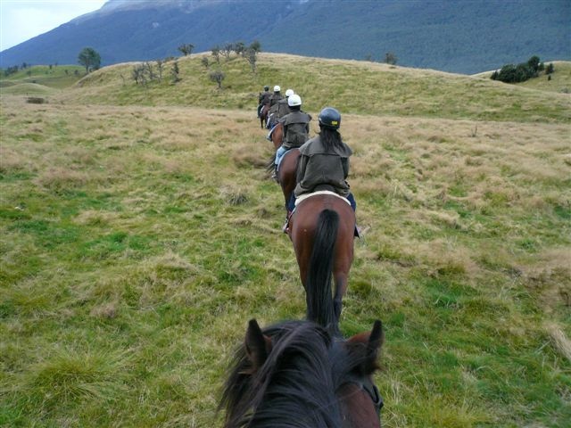 騎馬屬於自費活動,團員自行決定要不要參加,除了曉慧她們以外,六人要去騎馬,於是將曉慧她們丟棄在皇后鎮市區自生自滅,ㄜ…沒那麼狠啦,是在市區放她們下去自由逛街,並約定時間地點來接她們,之後便到騎馬場地去了。看曉慧的照片,她們下午的行程就在是去逛街,搭乘纜車到山頂上俯看整個皇后鎮,玩類似軌道碰碰車的東東,好像滿好玩的。