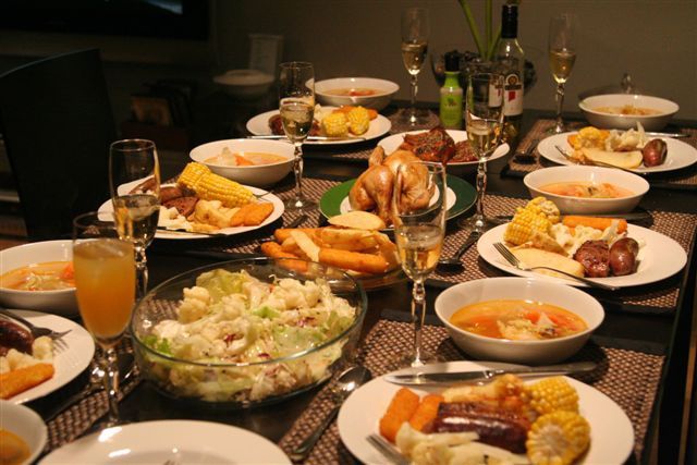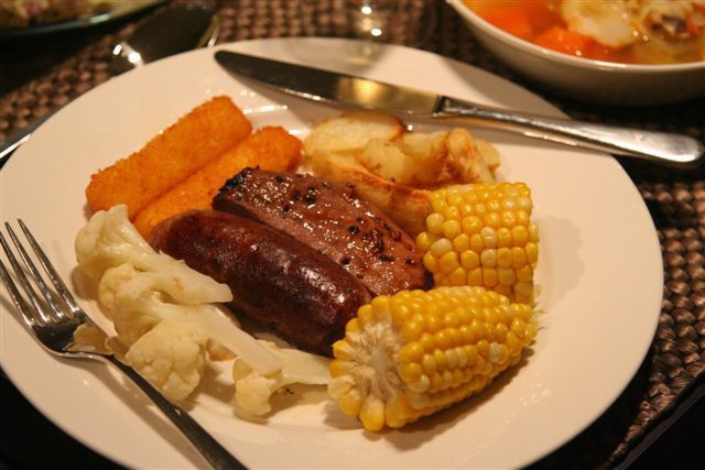 同樣的,經過大家分工合作,以及最辛苦的陳大廚巧手之下,變出了滿滿一桌豐盛的晚餐,晚餐菜色包含了海陸空三棲肉品,有炸魚柳、椒鹽鹹豬肉、香腸、菲力牛排、烤全雞;各式鮮蔬有白菜花、玉米、炸馬鈴薯、生菜沙拉;以及四喜特製的羅宋湯跟雷蒙提供的冰酒,擺滿一整桌,太壯觀了。滿桌的菜餚,精緻的擺盤,真的不輸給高級餐館喔。最後當然是吃不完啊,吃不完的留著明天早餐再吃掉吧。吃飽喝足睡大覺,期望明天熱氣球能順利起飛。
