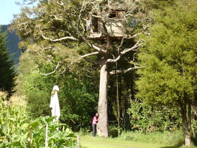大夥們飽餐一頓後,當然該做點運動一下幫助消化,那就是爬樹屋啦,陳教授在農場裡選了一顆大樹搭了一座樹屋,離地面大約有八公尺高吧,有繩梯可以爬上去,陳教授做示範率先爬上去,因為上頭最多只能付在三個人的重量所以得一個一個輪流爬上去,有爬上去的可以在上頭的英雄榜上留名,大夥陸陸續續都爬上去了。
