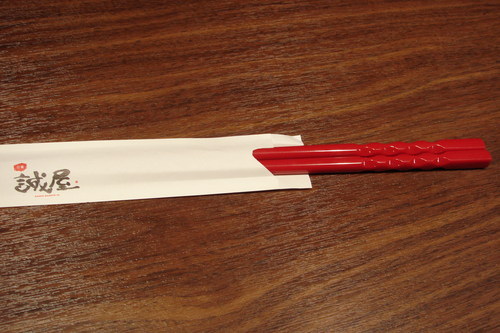 下午要去貓花園,所以中午特地來這家進來頗有名氣的誠屋拉麵吃吃看,聽說這家店是日本本店在海外的第一家分店,就在市民大道與復興北路口靠微風廣場那一邊,門口裝飾頗有日本風,因為到時已經下午一點過後了,人不算多,座位上有隔間成幾個小包廂或大包廂,服務生送上茶水與筷子,筷子並非免洗筷,這點算是不錯。