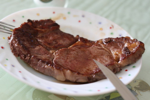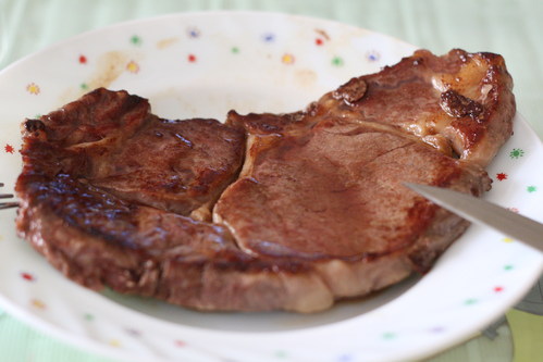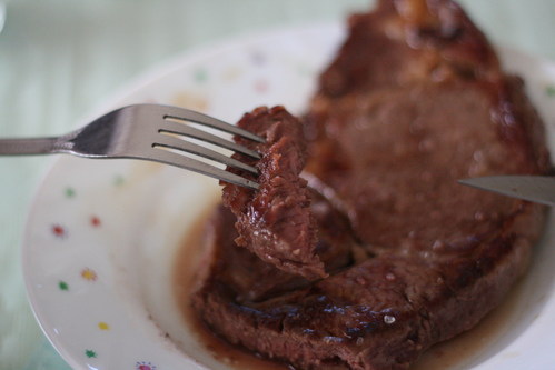 肉質很軟,很好吃,好吃到阿CO也很想吃,做的算是成功,下次可以買更好的肉來吃,同時我也在考慮要不要買專門煎牛排的鍋子?傷腦筋!