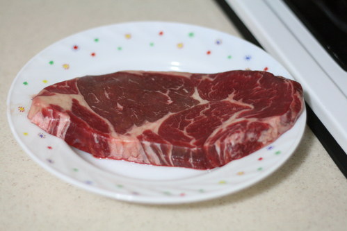 還沒用來煎牛排過,先拿個比較便宜的來試試看,購買肉品的地點是美福肉品,在台北市內湖區民善街76號,這是一家進口肉品的批發倉庫,也有零售中心,進口肉品的價格很便宜,我一次買了七大塊不同種類的牛排肉,價格也都不一樣,總共花了兩千二左右,高檔的有澳洲頂級極黑牛一公斤1500,今天拿來試驗的是美國特級沙朗一公斤850,因部位的差別,這一塊240公克,160元左右,非常便宜。