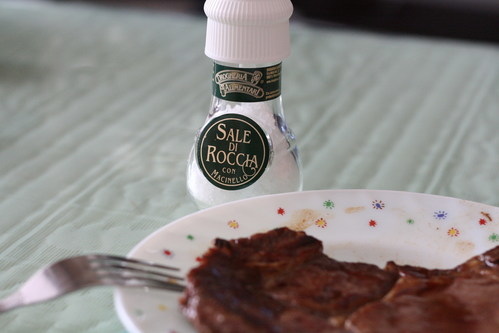 記得要用可以微波加熱的盤子,把盤子加熱來盛肉比較不會那麼快冷掉,在搭配高級岩鹽提味,千萬不要用坊間的黑胡椒醬,好的牛肉不需要任何調味,肉本身的原味就很美味了,灑點岩鹽就好。