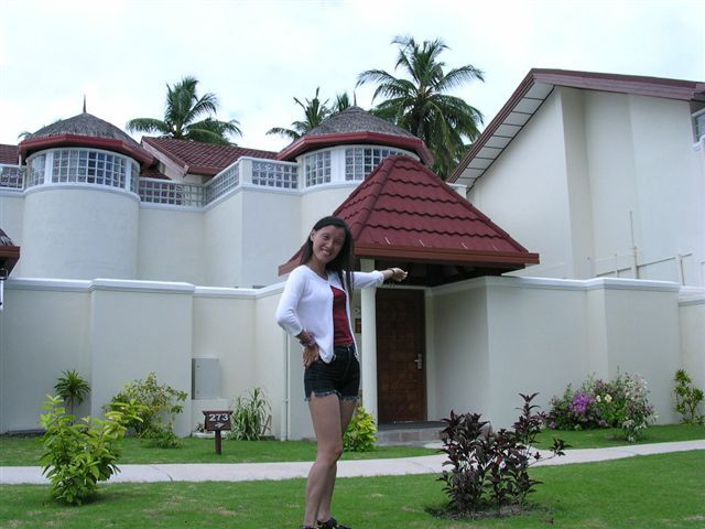 逛著逛著 … . 看到水裡有一對東方人面孔,聽 KiKi 說有四對台灣人被換到 Kurumba 來,該不會就是他們吧!一聽到他們說的話 … . 哇 … . 講國語ㄟ,真的是台灣人,總算有遇到同鄉的了,跟他們打個招呼便繼續往前走。走著走著,來到了高檔房間區,比我們住的房間更高一級的是私人 Villa ,房間裡還有私人游泳池,在上去是總統套房,本以為總統套房是最好的了,不過參照地圖標示,總統套房旁邊還有一棟更豪華的叫做皇家官邸,住一晚不知道要多少,也不知道我們什麼時候才住的起這樣的房間,不過我只知道一點 … . 就是肚子餓該吃晚餐了。